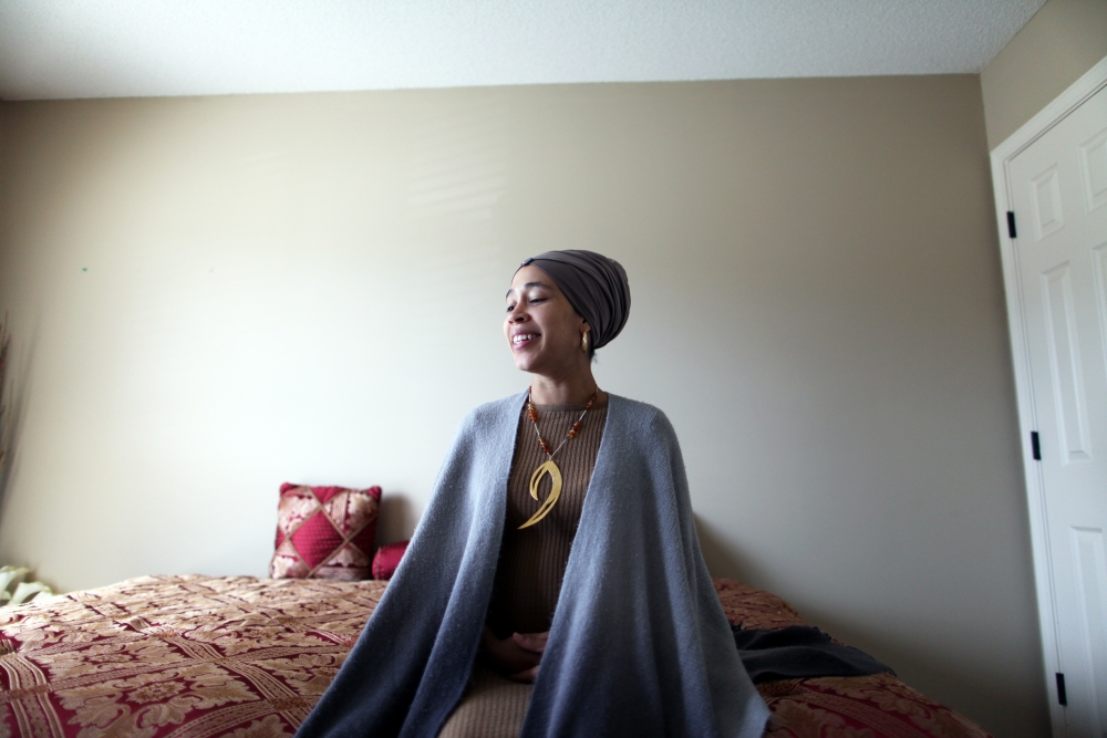 N'seeka MacPherson-Bey Holds Scarf Pen