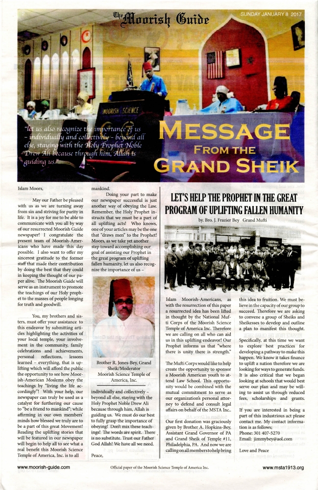 The Moorish Guide, Message for the Grand Sheik