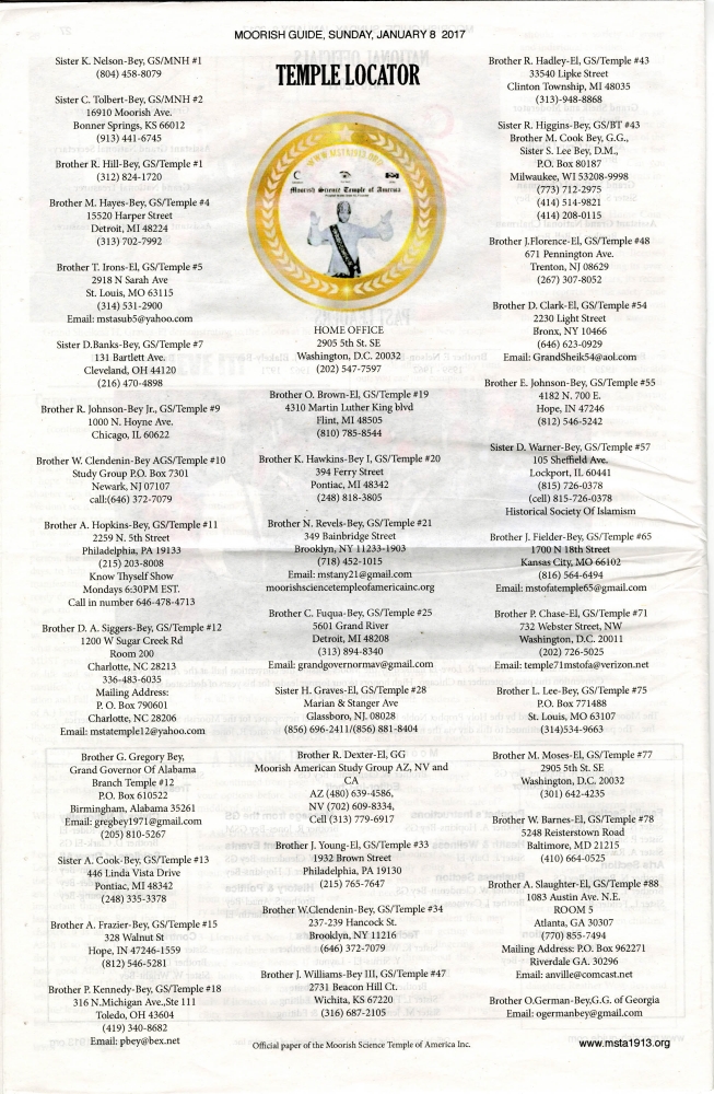 The Moorish Guide, Temple Locator